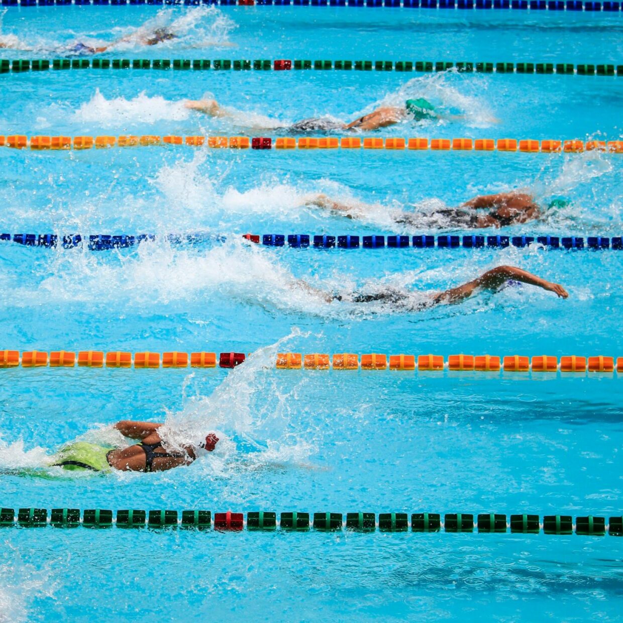 Guardo il bordo vasca mentre nuoto e vedo immagini di gare sportive.